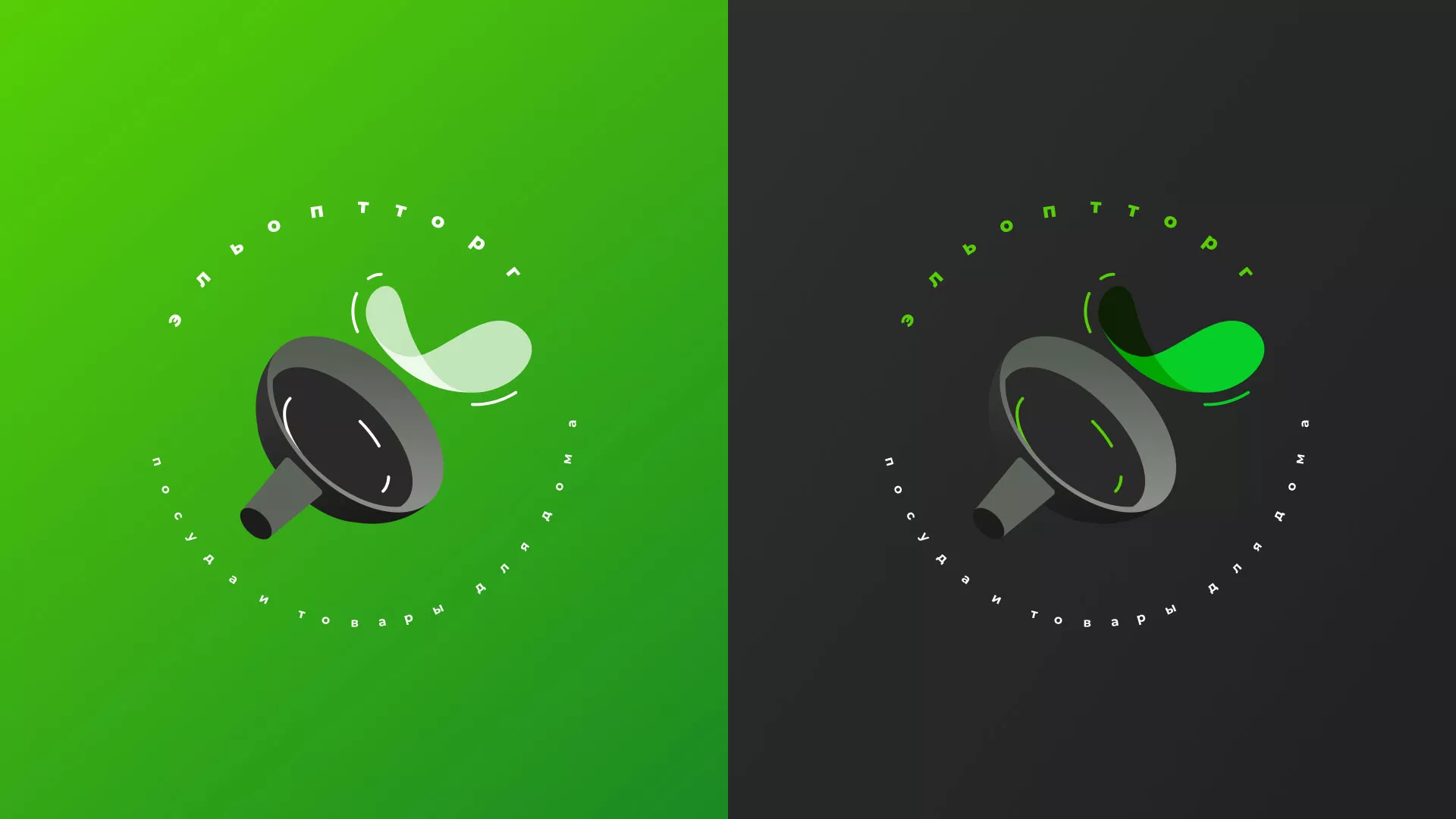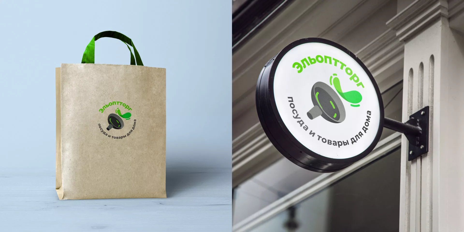 Четвертый вариант логотипа для компании «Эльоптторг» в Кизеле. Логотип представляет из себя динамичное изображение сковороды и процесса готовки. Круговая надпись дополняет рисунок и делает логотип более читаемым и понятным.