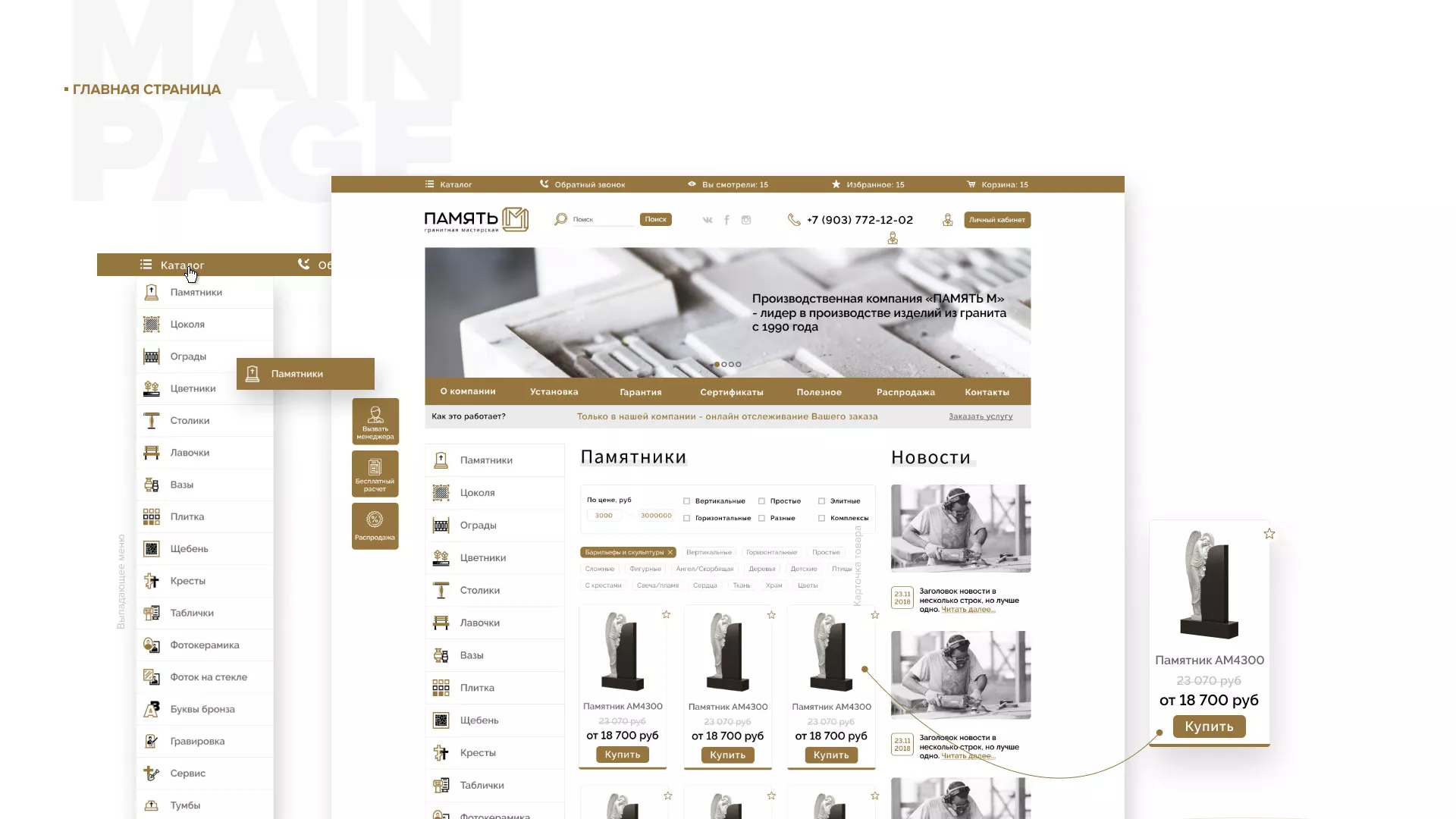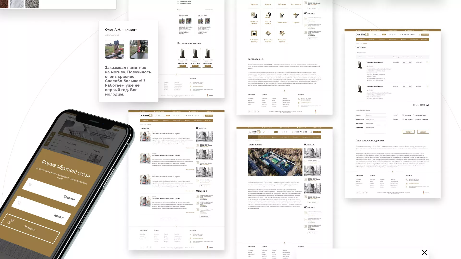 Разработка логотипа, фирменного стиля и сайта в Кизеле для компании «Память-М». Компания является предприятием по изготовлению всех видов надгробных сооружений: памятников, цоколей на могилу, оградок, столов, лавочек, ваз, балясин, плитки, мемориальных комплексов. Компании «Память-М» изготавливает все виды мемориальных изделий на собственном производстве в Кизеле.