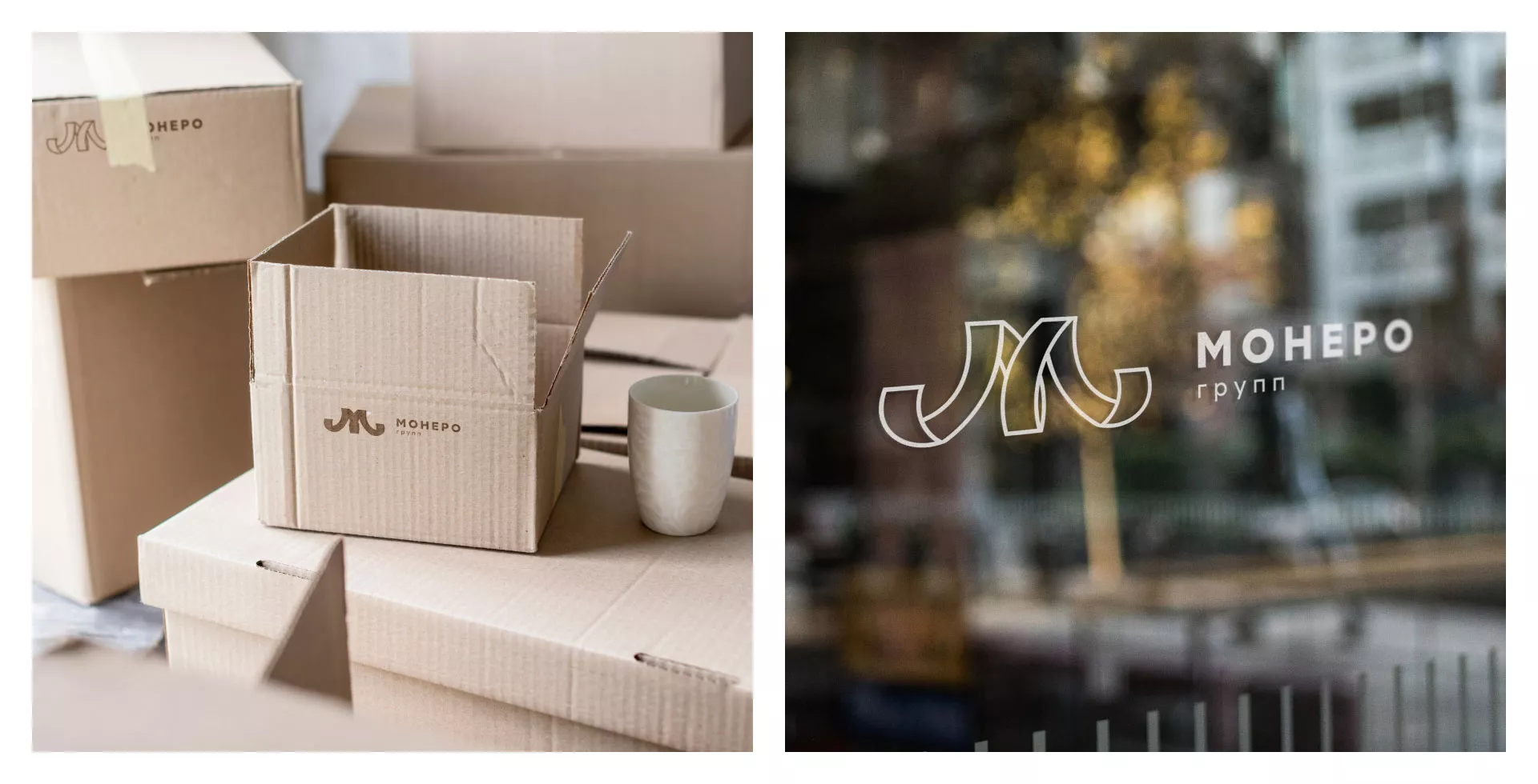 Разработка логотипа и фирменного стиля для компании «Монеро групп» в Кизеле. Компания является оптовым поставщиком кондитерских изделий в Кизеле.