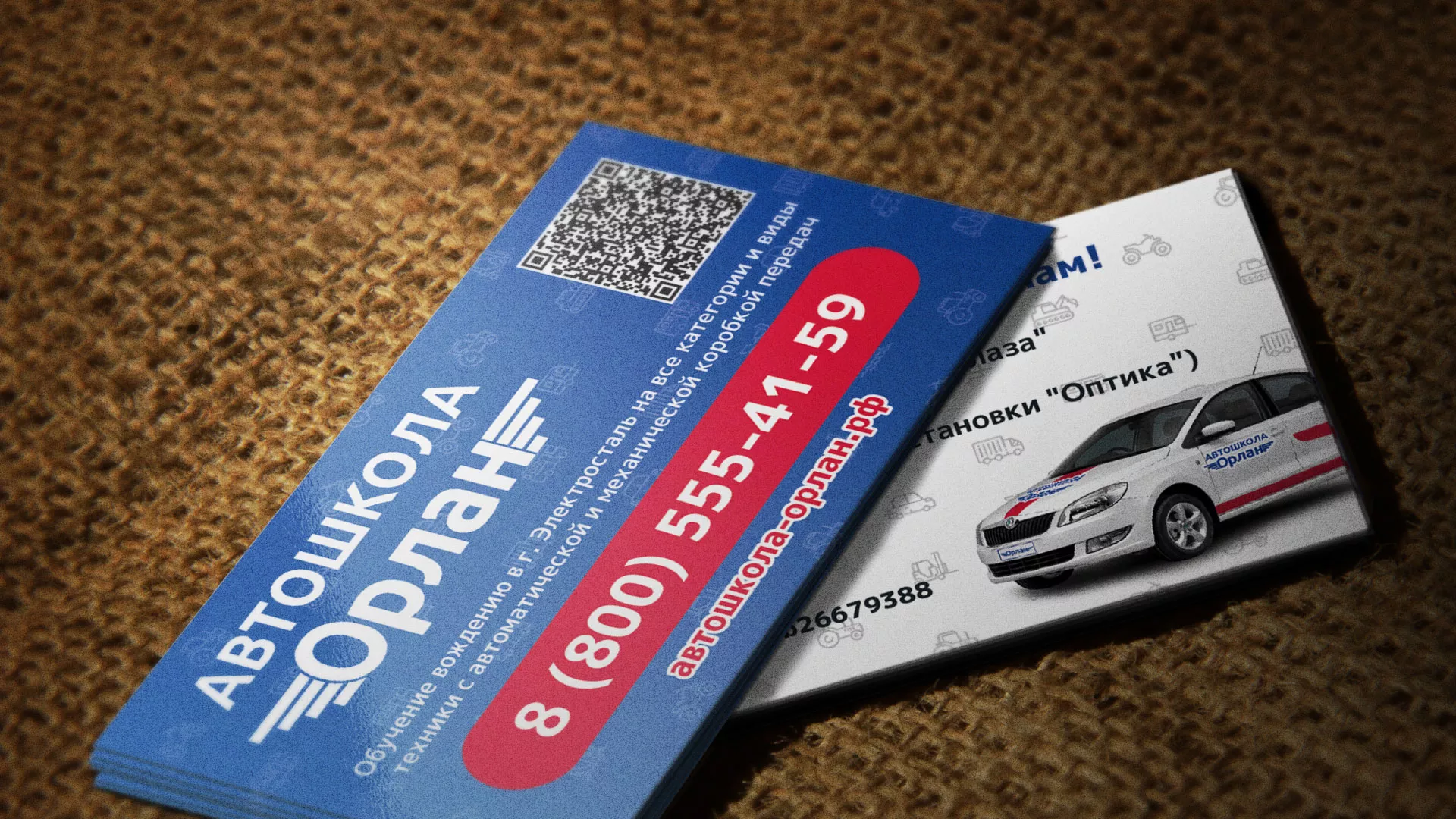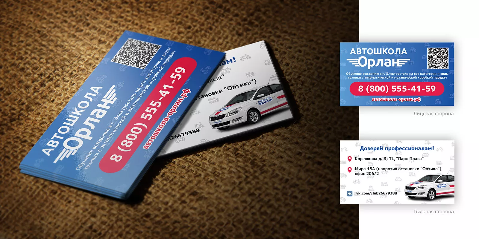 Разработка промо-визиток для автошколы «Орлан» в Кизеле