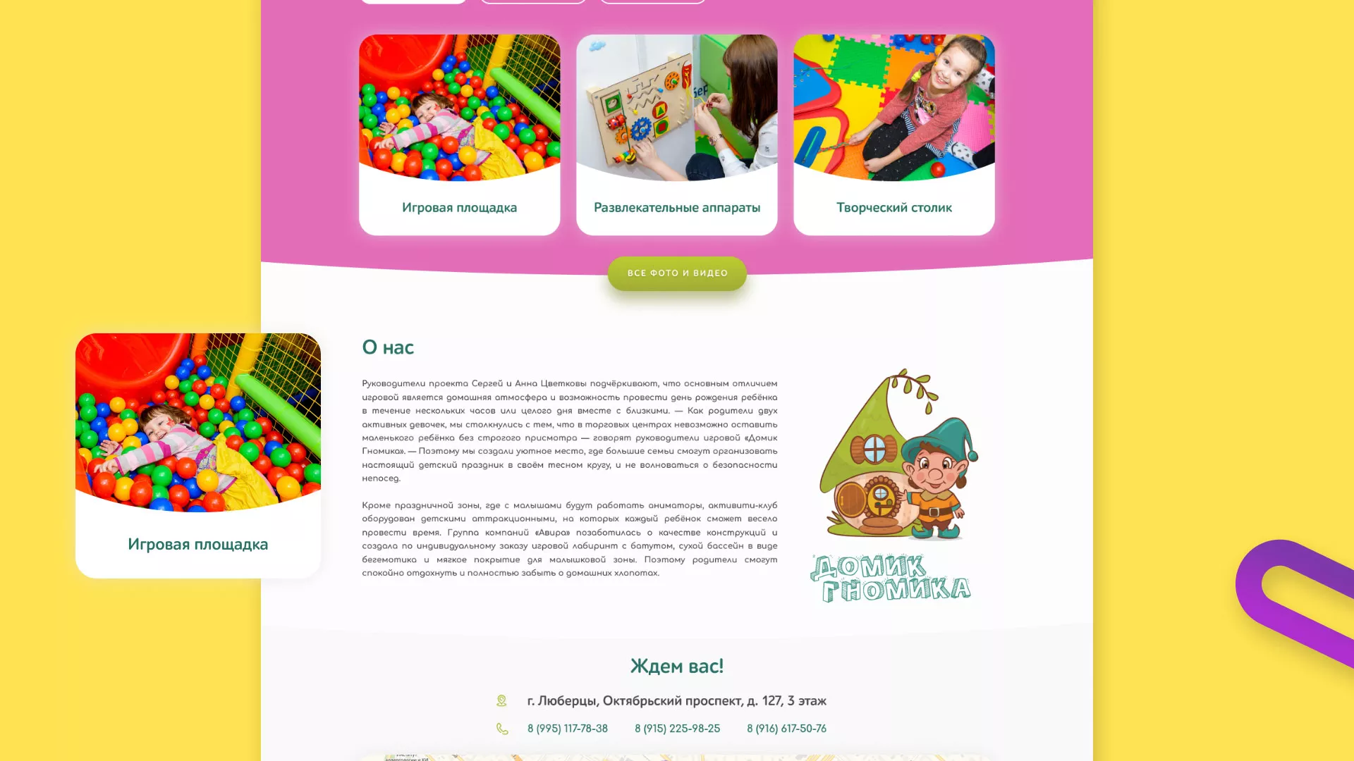 — Поэтому мы создали уютное место, где большие семьи смогут организовать настоящий детский праздник в своём тесном кругу, и не волноваться о безопасности непосед.